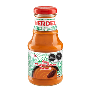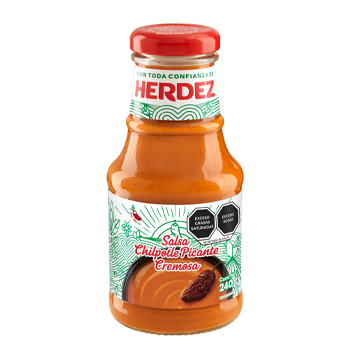 Ingredientes: Água, óleo vegetal, extrato de tomate, cebola, pimenta chipotle (4%), ácido acético, sal iodado, coentro, açúcar, alho em pó, goma xantana, especiarias e eritorbato de sódio.